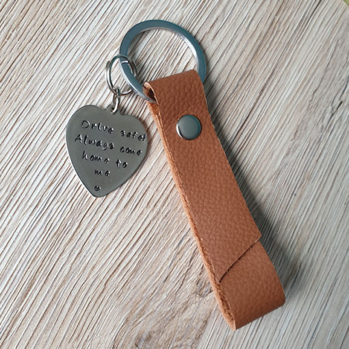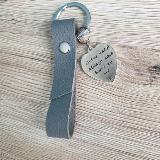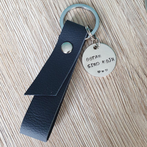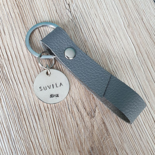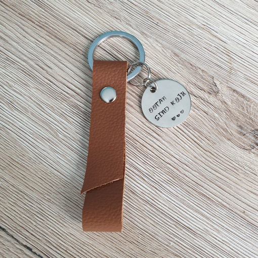 This leather keychain with metal plate is suitable for both men and women. The larger than usual keyring makes it look presentable. Text can be added to the metal plate or to the leather. The metal plates are available in both heart-shaped and round. The diameter of the metal plate is 30cm – this gives the possibility to add even more text, for example a full motivational phrase or empowering mantra.