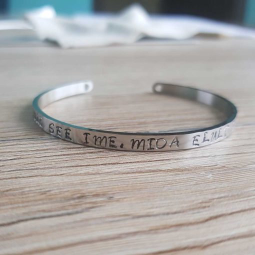 Metal bracelets are special because you can add a whole sentence to them if you wish – we can fit up to 52 characterson the bracelet .