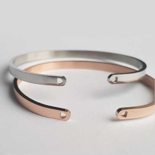 A pendant can also be added to the hearts if desired. The metal bracelet can be worn in two ways – either with the message on the back of the hand or with the hearts on the back of the hand.
