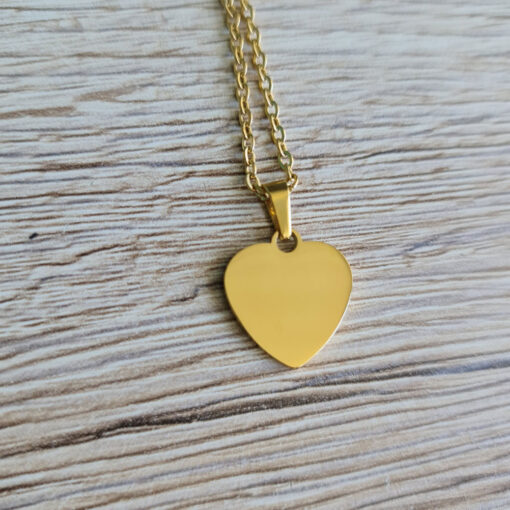 Available in three different shades, gold, silver and rose gold tone necklaces. It is possible to add a message on one or two sides of the necklace.