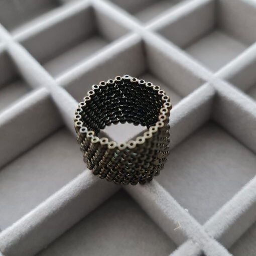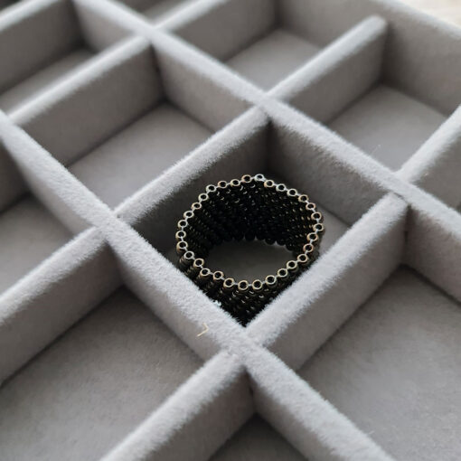 A bold and unique handcrafted bead ring designed for the wearer with a strong personality. Handcrafted from high quality bronze-grey glass beads, it offers a warm and rustic look or a bold urban edge? Its robust design gives the ring a striking and distinctive look.