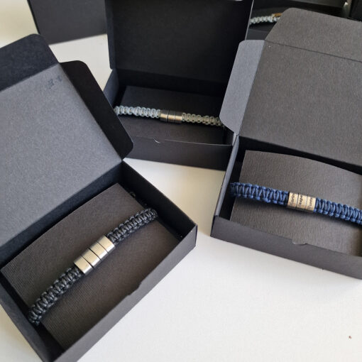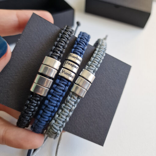RAdezaini Tugev side käevõru on loodud meestele, kelle jaoks pere, sõprus või armastus tähendab enamat kui sõnu. Graveerime sinu valitud nimed, kuupäevad või olulised sõnad roostevabast terasest rõngastele – iga tekst mahub umbes 7 mm laiusele alale. Hind sisaldab kolm graveeritavat rõngast. Soovi korral saad lisada rohkem — iga lisarõngas maksab 3€.