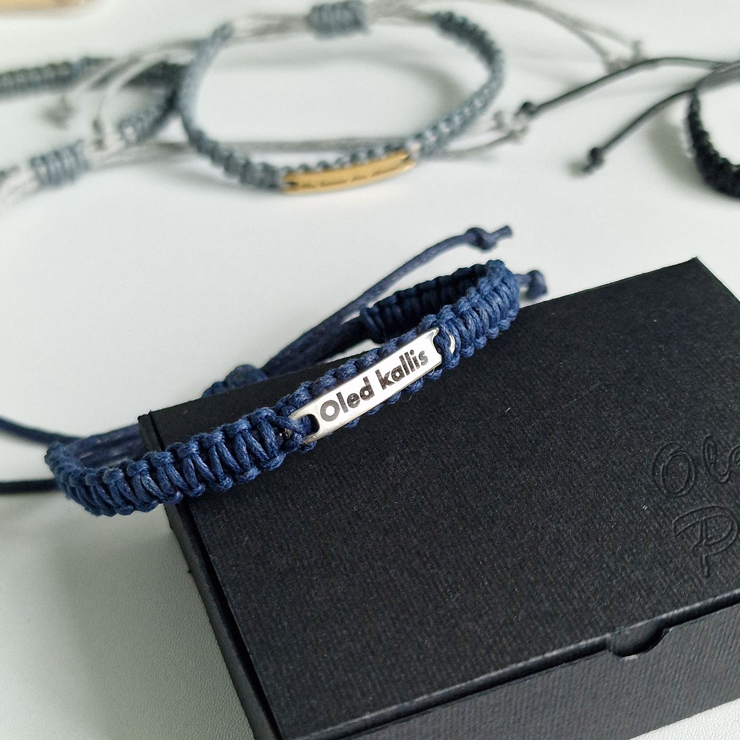 Käevõru on käsitsi punutud vastupidavast vahapaelast ning selle reguleeritav suurus tagab mugava sobivuse igale randmele. Graveeritud sõnum on roostevabast terasest 2 cm laiusel plaadil – tugev ja püsiv, nagu tunded, mida see väljendab.
