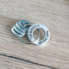 NB! Vanavanemate võtmehoidjal nimede seibid on 15mm läbimõõduga väiksem seib ning kasutati 1,5mm DEKO kirjastiili!
