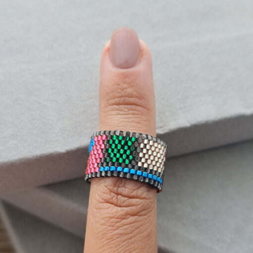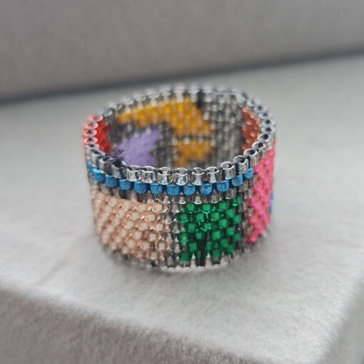 See erksavärviline helmesõrmus on tõeline pilgupüüdja, mis toob sinu ellu rõõmu ja sära. Valmistatud käsitööna kvaliteetsetest klaasist seemnehelvesdest. Sõrmus esitleb end erinevate värvide harmoonilises kooskõlas, pakkudes ainulaadset ja stiilset välimust. Toonid segunevad meisterlikult, luues sõrmusele dünaamilise ja mängulise ilme. See sõrmus on suurepärane valik neile, kes armastavad oma stiilis julgeid värvikombinatsioone ja tahavad oma ehtekogusse lisada midagi tõeliselt erilist.