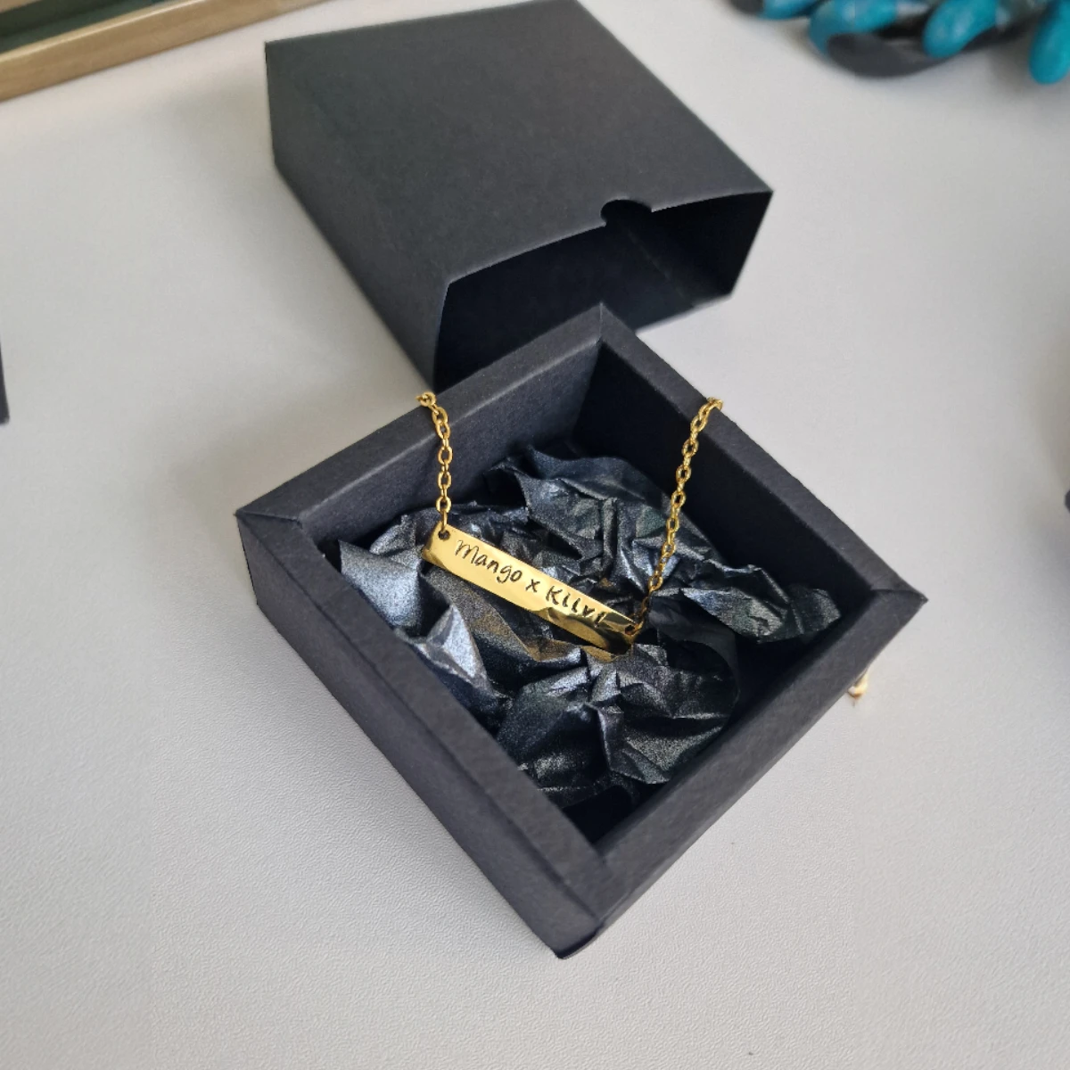 Kuldne kaelakett, millele saad lisada enda jaoks olulise sõnumi! Plaat, millele teksti lisatakse on poleeritud peegelsiledaks, muutes kaelakee väljanägemise luksuslikuks!