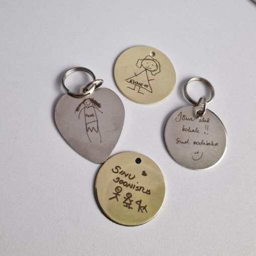 Kanna endaga kaasas midagi tõeliselt tähenduslikku. Saad lisada võtmehoidjale sinu enda, või näiteks Sinu lapse käekirjas kirjutatud sõnumi, joonistuse või signatuuri – ideaalne viis jäädvustada lapse joonistus, kallima käekiri või südamlik märk endale armsas vormis.