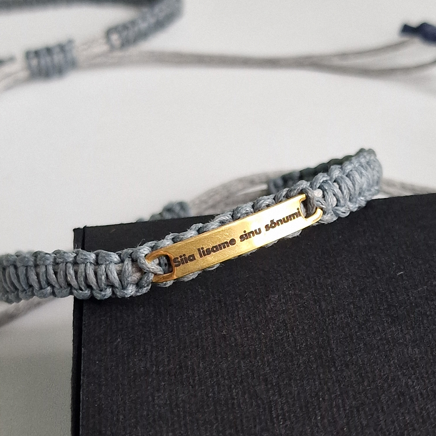 RAdezaini Sõnumiga käevõru meestele on ehe, mis kannab just seda sõnumit, mida Sina soovid edasi anda. Paigutame sinu teksti 2cm laiusele kuldsele, roostevabast terasest plaadile.